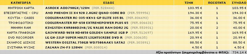 dominator_87 Δημοσ. 12 Μαρτίου 2009 Μέλος Δημοσ. 12 Μαρτίου 2009 Τελικα παρηγγειλα, δεν αντεξα αλλο... Ρισκαρα με mobo asrock καθως ηταν η πιο πλουσια στα ~100ε. Τελικα επελεξα παραλαβη απο το καταστημα χωρις συναρμολογηση ωστε αν μετανιωσω για κατι να πω οτι 'εγινε' καποιο λαθος στην παραγγελια και να το αλλαξω Οριστε και η συνθεση, βριστε ελευθερα. Ευχαριστω και παλι για την βοηθεια σας.