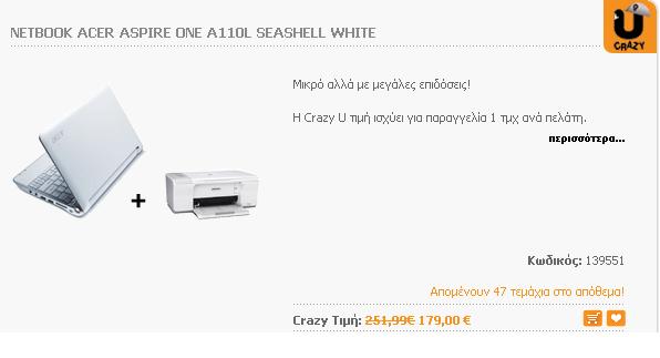 NteliX Δημοσ. 30 Μαρτίου 2009 Μέλος Δημοσ. 30 Μαρτίου 2009 Πάντως τώρα το δίνει το aspire με δίσκο usb 250 GB 2.5" Verbatim στα 199 στο crazy you. Πιο καλό ως σύνολο αλλά δεν θα μπορούσε να δίνει μόνο το netbook στα 150 να τελειώναμε; LOL!πραγματοποιηθηκε η ευχη σου. κατλυτερη τιμουλα δεν μπορουσες να ευχηθεις:mad:????:p Μαλλον μονο για σημερα το καταστημα You δινει το aspire one A110 στα 149Ε