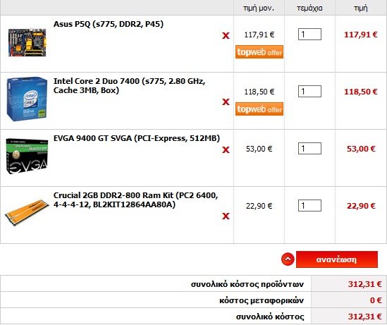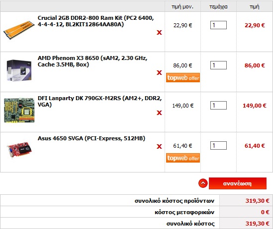 sYn Δημοσ. 3 Απριλίου 2009 Δημοσ. 3 Απριλίου 2009 Αν δε θες να περάσεις το ψυχολογικό όριο των 300€, μπορείς να κόψεις από την κάρτα γραφικών, μιας και στην ανάλυση που παίζεις είναι υπεραρκετή. Υ.Γ. : Δε μας είπες τι Windows φοράς και αν είναι 64bit.. (να ξέρουμε τι να κάνουμε με τις μνήμες)