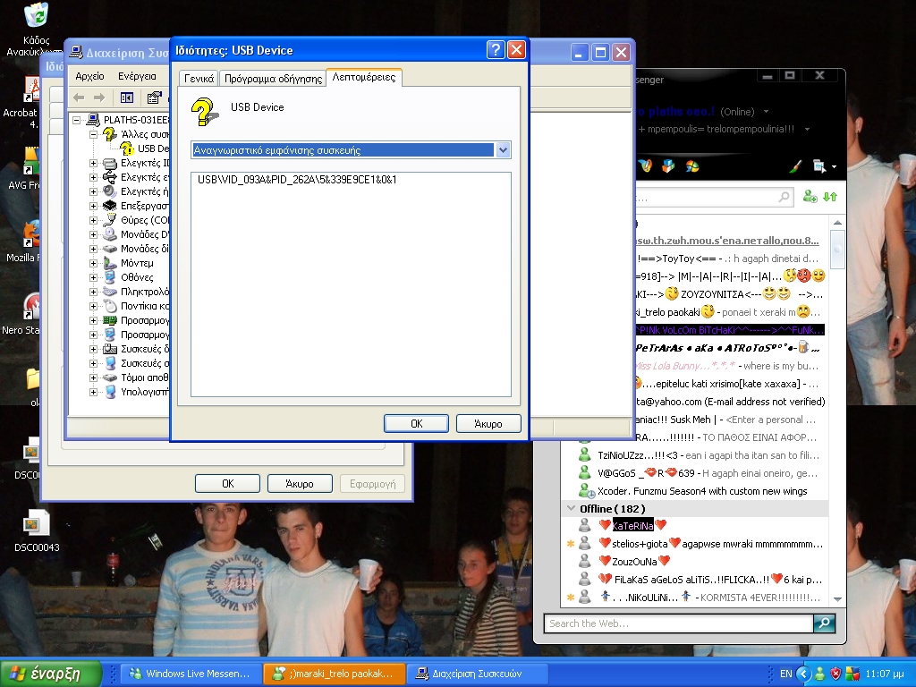 firewalker Δημοσ. 15 Απριλίου 2009 Δημοσ. 15 Απριλίου 2009 Κάνε ακριβώς το παρακάτω πράγμα. Και πόσταρε τα PID και VID. http://www.insomnia.gr/forum/showpost.php?p=2666842&postcount=18
