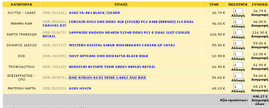 Antretng Δημοσ. 23 Απριλίου 2009 Δημοσ. 23 Απριλίου 2009 Λοιπό σου κανα μια τέλεια σύνθεση αν δεν τον πειράζει να δώσει περισσότερα χρήματα. Απο εκεί και πέρα αν αρχίσουμε τις περικοπές αν βάλει αυτό το τροφοδοτικό (-6 ευρώ) http://www.e-shop.gr/show_per.phtml?id=PER.700119 Αυτή τη κάρτα γραφικών (-56 ευρώ)http://www.e-shop.gr/show_per.phtml?id=PER.510689 Θα πάει κάπου στα 375 ευρώ. Αλλα αν παίζει games για μένα πάει στη σύνθεση που πρότεινα. Οτιδήποτε άλλο κόψεις σε λεφτά θα σου στοιχίσει πολύ ακριβότερα στο μέλλον από κάποια ενδεχόμενη αναβάθμιση (τροφοδοτικό, ram, σκληρός κλπ)