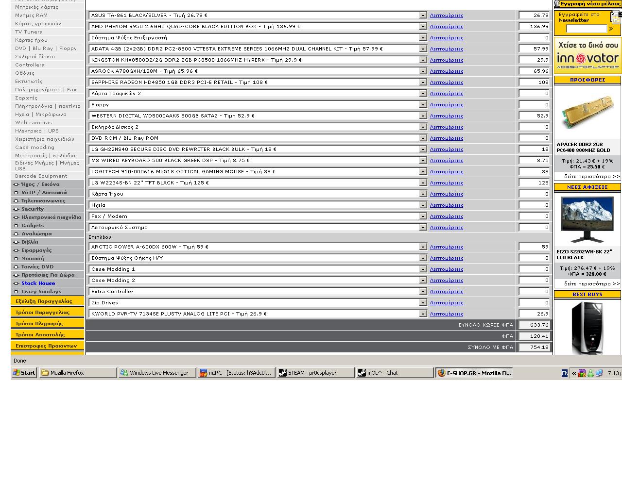 sada Δημοσ. 1 Ιουνίου 2009 Δημοσ. 1 Ιουνίου 2009 Γεια σας, Ενας φιλος θελει ενα νεο Η/Υ εως 750-800 ευρω. Εδω ειναι η συνθεση μου.Αμα εχετε καποια καλυτερη συνθεση προτινετε την.Ο Η/Υ ειναι για παιχνιδια και για σερφαρισμα. Ευχαριστω.