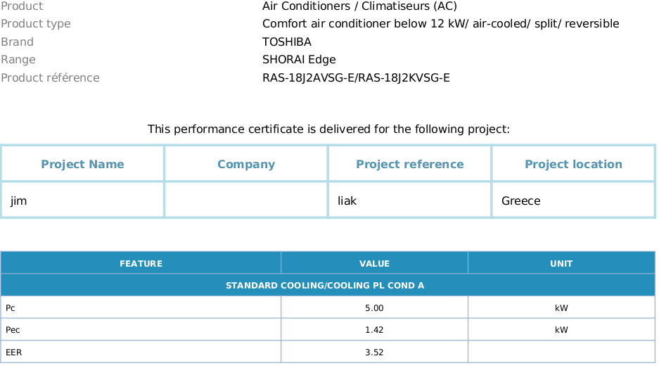 Ψυκτικη αποδοση  5Kw  (eurovent 5kw)