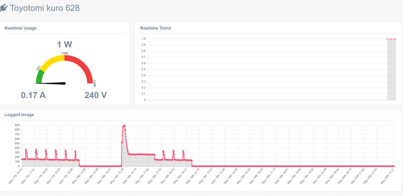 Μπες από την εφαρμογή του kasa θα δεις αλλά watt και όχι 1.