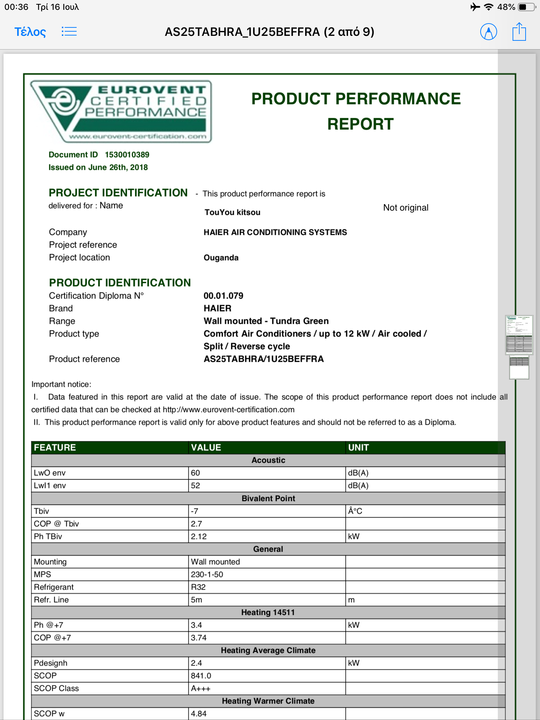 Έστειλα ερώτημα με τα πλήρη στοιχεία του υποτιθέμενου? 🤔 παραστατικού πιστοποίησης που υπάρχει στην haier gr στην eurovent καθώς και στην haier gr inventor για όλο αυτο το μπέρδεμα ,αναμένω και από τις 2 απαντήσεις