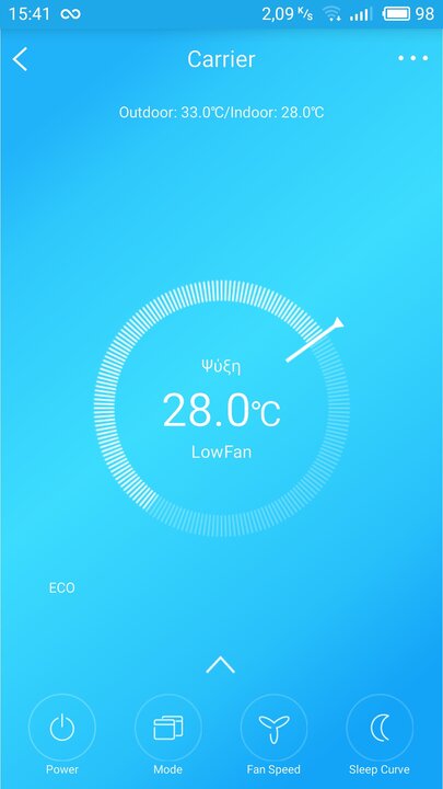 ΥΓ Το Carrier τώρα σε 17τμ με εξωτερική 33, μέσα 28 ζήτηση 28, eco , ανεμιστήρα low , έχω με μηδενικό θόρυβο ιδανική θερμοκρασία και 168W: