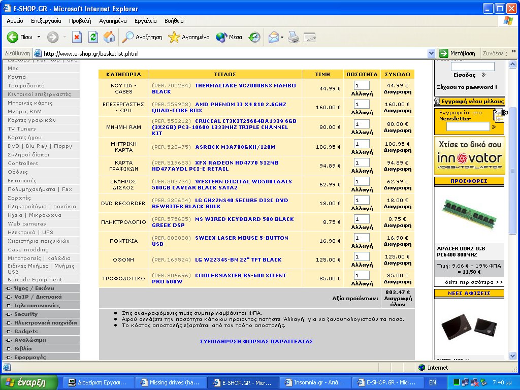 Antonis211 Δημοσ. 10 Ιουνίου 2009 Δημοσ. 10 Ιουνίου 2009 Βάψιμο μπλέ και πέταμα στο λιμάνι όπως έγραψα και σε ένα άλλο thread πριν λίγοΝα μην το παραγγείλει... Ή να περιμένει τους ι5 ή να πάει σε ΑΜD/AM3 Σοβαρά τώρα από που να αρχίσεις και που να τελειώσεις σε αυτή τη σύνθεση...Ψάξτε το λίγο.. Άκυρο socket,άκυρος σκληρός,άκυρη οθόνη overkill τροφοδοτικό..και τα υπόλοιπα δεν τα πολυψάχνω για να σου πω..Αυτά τα 4 κάνουν μπαμ μόνο Σκληρό αν θέλετε Seagate πάρτε τον 7200.12,o .11 βγήκε ελλατωματικός αλλιώς WD AAKS..οθόνη διαλλέξτε μία με DVI(με υποστήριξη HDCP κατα προτίμηση) Πες μας τι ακριβώς θέλει να κάνει με το pc,πόσα λεφτά διαθέτει και αν υπάρχουν συγκεκριμένες προτιμήσεις σε μάρκες να σου προτείνουμε κάτι. διαθετει 830 ευρω για κουτι,οθονη 22ιντσες(οχι Hd),πληκτρολογιο,ποντικη και ειναι για παιχνιδια.Επιπλεον να ειναι απο e-shop γιατι εχει συναρμολογηση και επειδη πλαισιο δεν υπαρχει στην πολη μας επισης ειμαι ο sada για να μην μπερδευτειτε