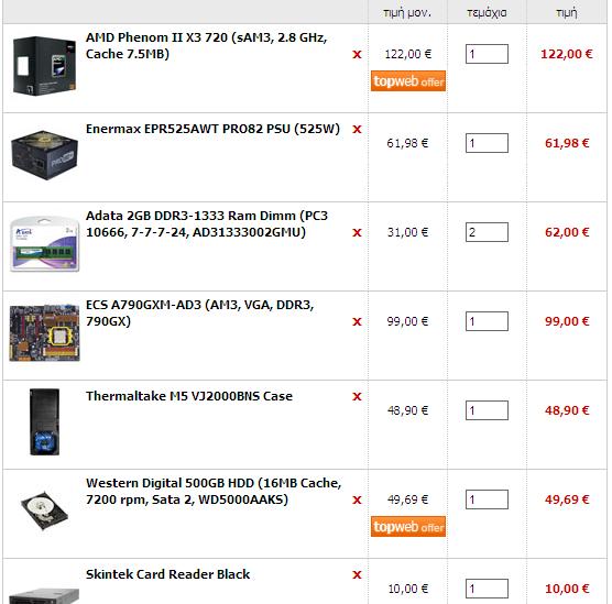 kotlid Δημοσ. 26 Ιουνίου 2009 Μέλος Δημοσ. 26 Ιουνίου 2009 Λοιπον διαβασα και αλλα thread και κατεληξα σε μια συνθεση http://www.e-shop.gr/show_per.phtml?id=PER.806701 http://www.e-shop.gr/show_per.phtml?id=PER.559959 http://www.e-shop.gr/show_per.phtml?id=PER.553904 χ 2 http://www.plaisio.gr/product.aspx?product=1302450&SOCKET=sAM3&category=69977721&catalog=20&MSCSProfile=DCCDF22EB27065BE74277CB8CCB73BC4AB65A725B7A69995268C3E54D9A7BD2AE098419294AADB30C69183DE330DDBD52506A4412E7148381C20DEBCA44963BEF1CBE34639C0916626ED6DAFEEEB09525E302CDD4851E8016BB26A116EBB46971FC15473E3710476CBEB2E6330EDC1BA490CF9B281B57E58C9CC49EB064A6504 http://www.e-shop.gr/show_per.phtml?id=PER.303709 http://www.plaisio.gr/product.aspx?product=1141473&POWER_W=525+W&category=69977705&catalog=20&MSCSProfile=DCCDF22EB27065BE34B5C798FF3210F6A1EDF9243E8F990B17A5588312E3BCD34279A426D870B12219E0586162C8BC472CDC0EE05EC1C60B14E25A781DF6D08EBECC4B1B8C22056FC8F41912F1F4D391C9CD8D18DB4269C26726944AE58AEECFDBC473B2A5B254EABFC46EE3F8141FCB0CEDCB75D5110F80A6E4822F519616E1472133B92599BECD 450 € συνολο Πως σας φαινεται? Νομιζω πιο μετα με μια καρτα γραφικων σηκωνει και παιχνιδια?