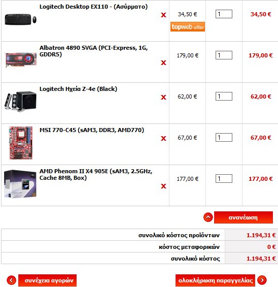 konandrio Δημοσ. 21 Ιουλίου 2009 Μέλος Δημοσ. 21 Ιουλίου 2009 Σας ευχαριστω ολους, η παραγγελεια θα γινει οπως φενετε ποιο κατω, το pc φτιαχνετε για εναν φιλο πιτσιρικο, αν ηταν για μ ενα δεν θα εβαζα ουτε ati ουτε amd, ssd δεν βαζω γιατι προκειτε για αρχαριο χρηστη και δεν προκειτε να κανει εγκατασταση εφαρμογων σε αλλο partition αλλα στο C, οποτε καταλαβενετε τι θα γινει.