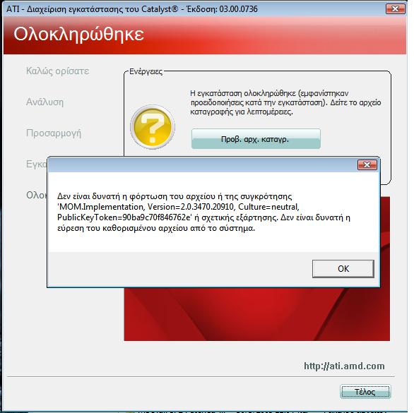Antwni Δημοσ. 23 Αυγούστου 2009 Μέλος Δημοσ. 23 Αυγούστου 2009 Όχι!!Μήπως μπορείς να μου δώσεις το link που να είναι συμβατό με τα Vista 64bit?? Edit Τώρα όταν πάω να κάνω την εγκατάσταση μου λέει το παρακάτω (στην foto) και όταν πάω να ανοίξω το ccc μου βγάζει το σφάλμα στην δεύτερη εικόνα!!! Έχω ψάξει στο google και όλοι λένε ότι χρειάζεται το framework!! Μήπως μπορεί να κανείς να μου δώσει το link να το κατεβάσω?? Το λειτουργικό μου (όπως ανέφερα και παραπάνω) είναι Vista 64bit Όποιος με βοηθήσει θα του ήμουν ευγνώμων!!!