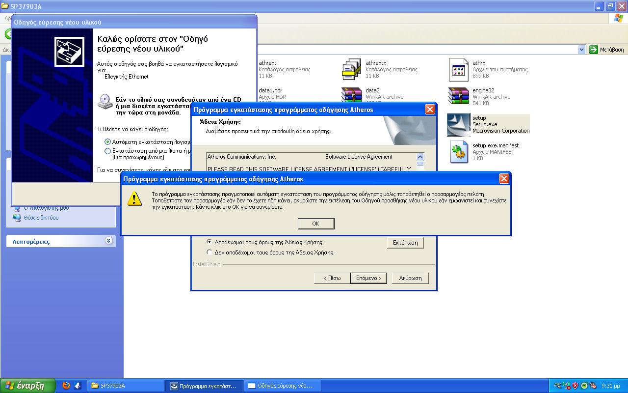 Mullenv Δημοσ. 27 Αυγούστου 2009 Μέλος Δημοσ. 27 Αυγούστου 2009 σου λέει να κάνεις άκυρο στο παράθυρο που λέει οδηγός εύρεσης νέου υλικού (πάνω αριστερά) να πατήσεις οκ σε αυτό το παράθυρο με το μήνυμα και να συνεχίσεις κανονικά την εγκατάσταση το δοκιμασα κι αυτο αλλα ενω οι οδηγοι εγκαθηστοντε κανονικα το ethernet λεει πως δεν λειτουργει σωστα....μου εμφανιζει το παρακατω μηνημα...