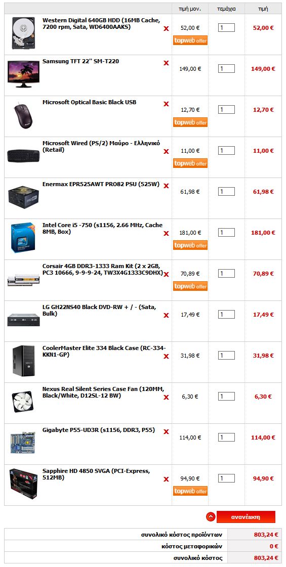 DrFreeman Δημοσ. 11 Σεπτεμβρίου 2009 Δημοσ. 11 Σεπτεμβρίου 2009 [ATTACH]20312[/ATTACH] μια προταση στα ιδια χρηματα με amd:-D Kαλή εναλλακτική σύνθεση, απλώς προσωπικά θα προτιμούσα μια GTX275 στη θέση της 4890.