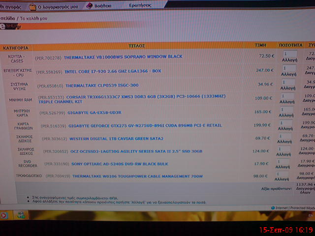 jumaru112 Δημοσ. 15 Σεπτεμβρίου 2009 Δημοσ. 15 Σεπτεμβρίου 2009 καλησπερα θα ηθελα να ακουσω τις γνομες σας η κατι να αλαξω σε αυτο την παραγγελια θελω να ειναι απο το eshop εαν γινετε γιατι στην ροδο εχει μονο αυτο υποκαταστημα η καντε δικη σας συνθεση τνχ το pc ειναι ενος φιλου http://www.e-shop.gr/basketlist.phtml