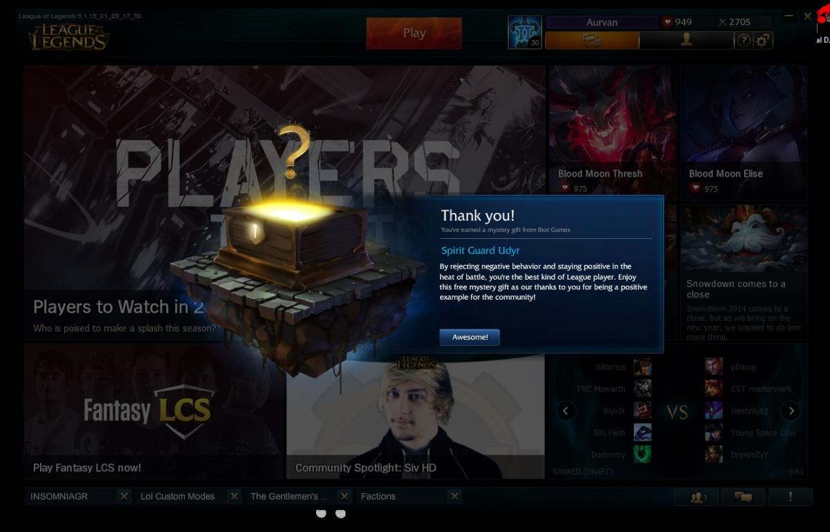 MavroManitari Δημοσ. 15 Ιανουαρίου 2015 Δημοσ. 15 Ιανουαρίου 2015 Εχω φαει warning και απο πισω να φενονται τα 7 honor 3 teamwork και 4 honorable opponent απτο ιδιο ματς(μαλλον ο 5ος εχθρος ηταν το αντιπαλο τοπ και ετσουξε ).ΕΙναι λιγο οτι νανε η κατασταση Είχα παλιό screenshot που έσκασε το chat restriction με το που βγήκα από τα stats με +2 Teamwork +1 Friendly στην γωνίτσα να αχνοφαίνονται. Νομίζω μου έγινε άλλη μια φορά και το είχα αναιβάσει και εδώ