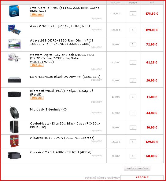 kukukali Δημοσ. 2 Οκτωβρίου 2009 Μέλος Δημοσ. 2 Οκτωβρίου 2009 Τελικα κατεληξαμε στο παρακατω... Ελπιζω να τον πεισω να δωσει 20 ευρω παραπανω για καλυτερο τροφοδοτικο,εις βαρος του ποντικου Σας ευχαριστω και εκ μερους του αδερφου μου(για αυτον προοριζεται το pc)