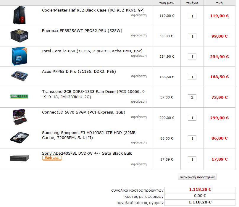 mohic4n Δημοσ. 29 Οκτωβρίου 2009 Δημοσ. 29 Οκτωβρίου 2009 1670€ περιπου το συστημα που εφτιαξες. 1118€ αυτα που σου προτεινω. Αν κανεις την αφαιρεση σου μενουν 550€υρα να παρεις εναν SSD (αν τον χρειαζεσαι) ή να τα διαθεσεις σε οθονη (αν τη χρειαζεσαι) σε ηχεια (αν θες να τα αλλαξεις) πληκτρολογιο-ποντικι (αν θες να τα αλλαξεις). Για να γλυτωσεις κι αλλα λεφτα βαζεις τον Ι5-750, και οι διαφορες που θα δεις θα ειναι μονο σε benchmarks και σε καποια βαρυα προγραμματα (και παλι δυσκολα). Εβαλα αυτες τις μνημες, παρολο που ειναι φθηνες ειναι καλες. Τα λεφτα που σου μενουν απο το αν επαιρνες καποιες πιο ακριβες, τα κρατας στη μπαντα για να περασει ο καιρος και να περιμενεις να βγουν και αλλες, συν να πεσουν και οι τιμες.