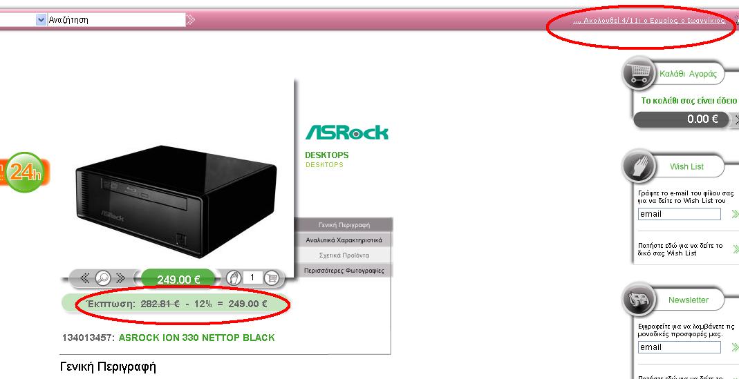 Moderators matrixxx Δημοσ. 3 Νοεμβρίου 2009 Moderators Δημοσ. 3 Νοεμβρίου 2009 Πάει η προσφορά, χθες υπήρχε, σήμερα που πήγα να παραγγείλω.... Κανεις λαθος δεν "παει" η τιμη, μολις το τσεκαρα και ειναι 249 Hint: Κανε κλικ πανω στο nettop στο newsletter