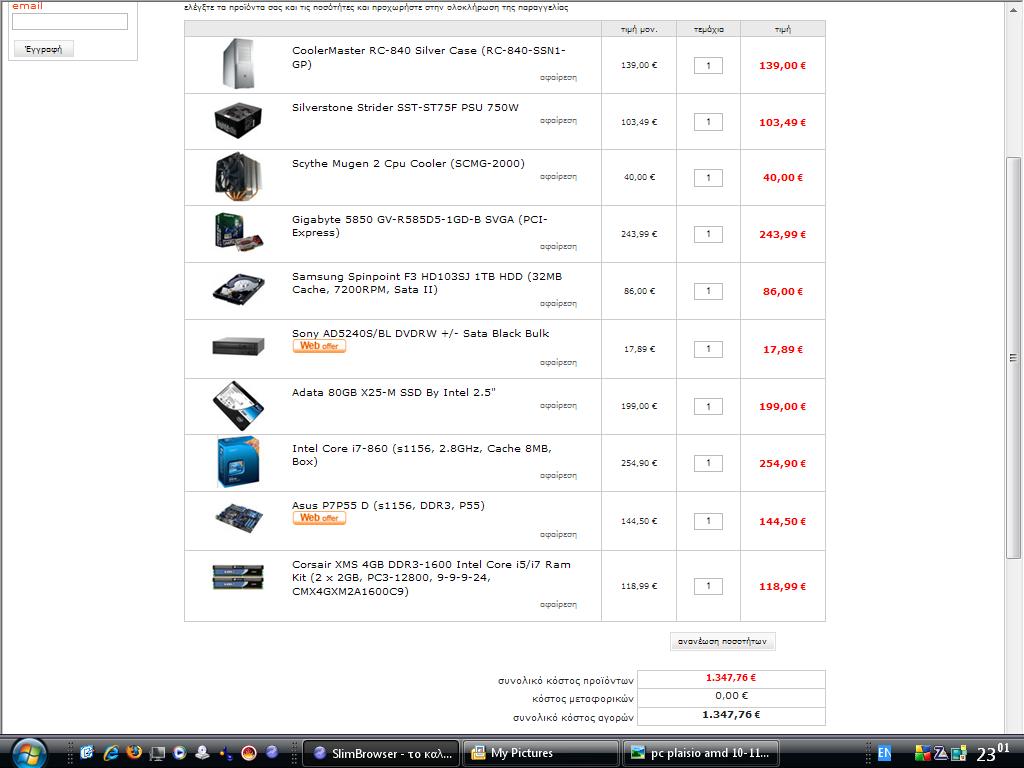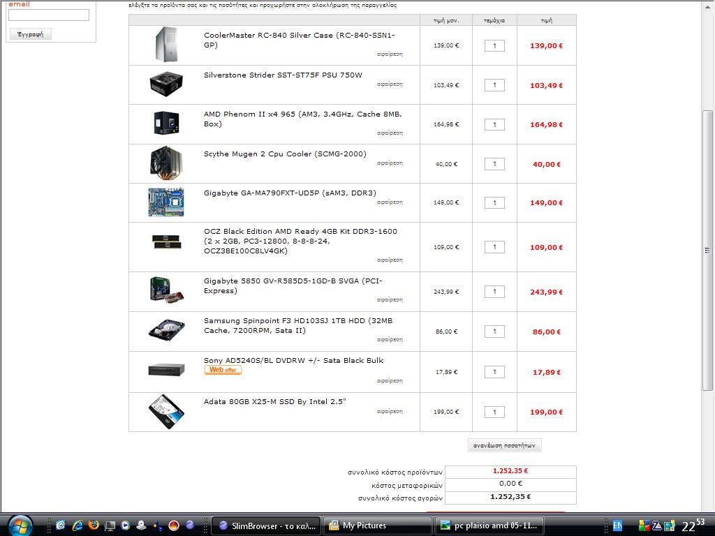 VKostas Δημοσ. 11 Νοεμβρίου 2009 Δημοσ. 11 Νοεμβρίου 2009 Ήρθε ο καρός να αλλάξω κι εγώ pc... Το budget θα είναι γύρω στα 1200Ε χωρίς οθόνη, και η χρήση για την οποία προορίζεται θα είναι λίγο απ' όλα (ΚΑΙ παιχνίδια). Τα κομμάτια θα πρέπει να είναι όλα από ένα κατάστημα, μια και θα μου το κάνουν δώρο. Ετοίμασα 2 συνθέσεις, μια με AMD και μια με Intel. Να σημειώσω ότι i5 750 δεν με πολυενδιαφέρει. Για οθόνη είμαι μεταξύ HP W2448HC και Dell 2209WA (δεν θέλω να ξεφύγω σε κόστος). Η οθόνη θα είναι κυρίως για χρήση γραφείου, μια και σε ταινίες και παιχνίδια χρησιμοποιώ την τηλεόραση της υπογραφής. Περιμένω τις γνώμες σας! Υ.Γ. Τι επίπεδα θορύβου να περιμένω; Υ.Γ.2 Το πρώτο μου thread σε 6 χρόνια membership στο Insomnia!