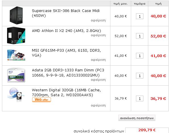 pcos Δημοσ. 11 Νοεμβρίου 2009 Δημοσ. 11 Νοεμβρίου 2009 αφου δεν θες παιχνιδια και θες 24/7 οπωσδηποτε θα παρεις Μ/Β με ενσωματωμενη VGA. και γγια NVIDIA εδω: http://www.plaisio.gr/Computers/Hardware/Motherboards/Asus-M4N78-Pro-Am3-Ddr2-Nv8300-Vga-90-MIB7C0-G0EAY00Z.htm και αυτη τη CPU http://www.plaisio.gr/Computers/Hardware/CPU/AMD-Athlon-II-X2-240-AM3-2-8G.htm μνημες κατι τετοιο ή τις πιο φθηνες 2x2GB http://www.plaisio.gr/Computers/Hardware/RAM/Mushkin-Ddr2-4Gbkit-Xp-6400-4-4-4-12-White-996580W.htm και δισκος 500GB http://www.plaisio.gr/Computers/Hardware/Hard-Disk-Drives/Western-Digital-Sata-Ii-500Gb-Western-16Mb-Cache-7200-WD5000AAKS.htm δεν εκανα σουμα αλλα νομιζω ειμαι μεσα σο οριο