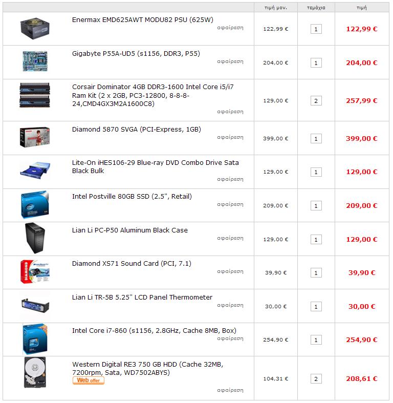 honalx Δημοσ. 18 Νοεμβρίου 2009 Δημοσ. 18 Νοεμβρίου 2009 Καλησπέρα, Μετά από χρόνια αδράνειας αποφάσισα να αγοράσω νέο υπολογιστή για να μπορώ να παίξω κανένα σοβαρό παιχνίδι στο pc. Η χρήση του εκτός από παιχνίδια, είναι ερασιτεχνική επεξεργασία photo και video, επαγγελματική χρήση προγραμμάτων όπως autocad 2d, solidworks, ταινίες, κτλ. Το σύστημα θα συνδυαστεί με οθόνη 24'' dell u2410. To ξέρω ότι οι παρακάτω επιλογές αγγίζουν τα όρια της υπερβολής, αλλά δυστυχώς το μάτι δύσκολα ικανοποιείται και επιπλέον, το σύστημα χρηματοδοτείται 50% από εμένα και 50% από κρατικό πρόγραμμα χρηματοδότησης. Για το λόγο αυτό ζητώ την δική σας συμβολή και σχόλια για την εκλογίκευση ή μη του συστήματος. Ευχαριστώ