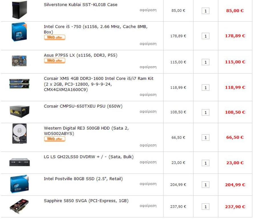 Dropsreef Δημοσ. 7 Δεκεμβρίου 2009 Δημοσ. 7 Δεκεμβρίου 2009 επειδη και εγω ειμαι ετοιμος σττο να αγορασω pc οριστε τι σου προτεινω! motherboard:Asus P7P55 LX (s1156, DDR3, P55) http://www.plaisio.gr/Computers/Hardware/Motherboards/Asus-P7P55-LX-s1156-DDR3-P55-90-MIBB80-G0EAY0KZ.htm μνημες Ram:Corsair Dominator 4GB DDR3-1600 Intel Core i5/i7 Ram Kit (2 x 2GB, PC3-12800, 8-8-8-24,CMD4GX3M2A1600C8 http://www.plaisio.gr/Computers/Hardware/RAM/Corsair-4GB-DDR3-1600-Intel-Core-i5-i7-Ram-Kit-2-x-2GB-PC3-12800-8-8-8-24.htm τροφοδοτικο:Corsair CMPSU-650TXEU PSU (650W) http://www.plaisio.gr/Computers/Hardware/PSU/Corsair-650W-CMPSU-650TXEU.htm και γενικοτερα η συνθεση μου ειναι αυτη στα 1140€ διαλεγεις οτι σε ενδιαφερει απορριπτεις οτι σου ειναι αχρηστο