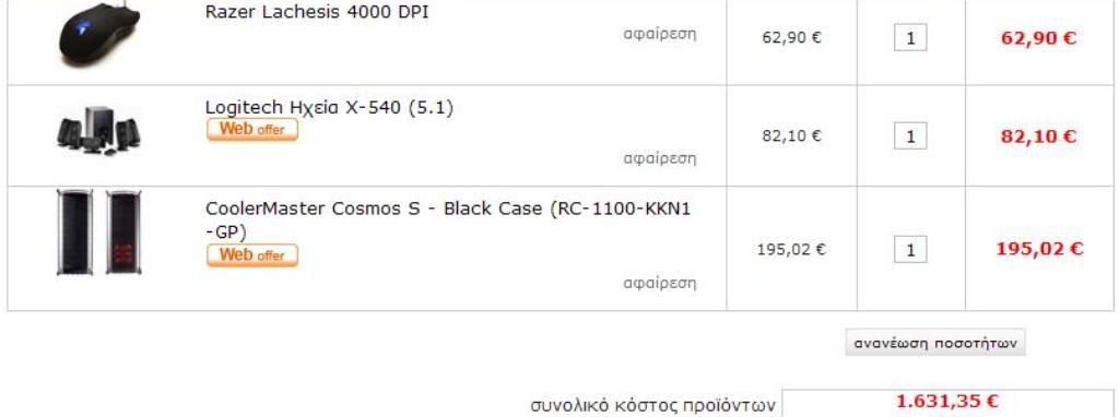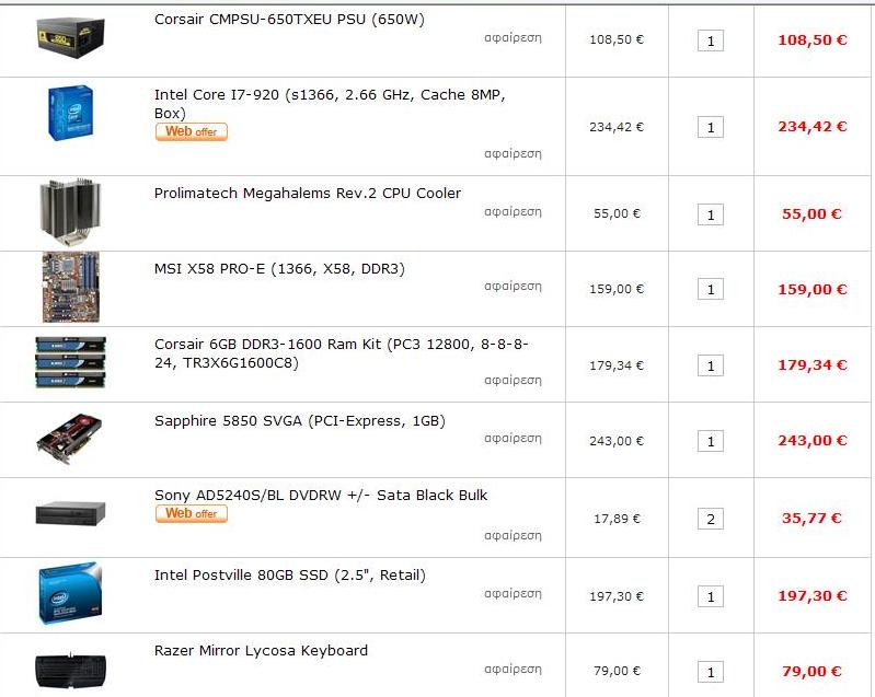 Dropsreef Δημοσ. 4 Ιανουαρίου 2010 Μέλος Δημοσ. 4 Ιανουαρίου 2010 τελικα καταληξαμε στην παρακατω συνθεση και θα προχωρησουμε στην παραγγελια αυριο ή μεθαυριο!οθονη την 24'' Dell!(η οποια υπολογιζω πως θα στοιχισει 500-520€(Τhresh θα εχεις συντομα νεα μου για την αποδοση της συνδεσμολογιας καρτας γραφικων οθονης!!!) οποτε συνολικο κοστος 2130€-2150€!μια χαρα(εννοω σε σχεση με το αρχικο budget για να μην παρεξηγηθω)