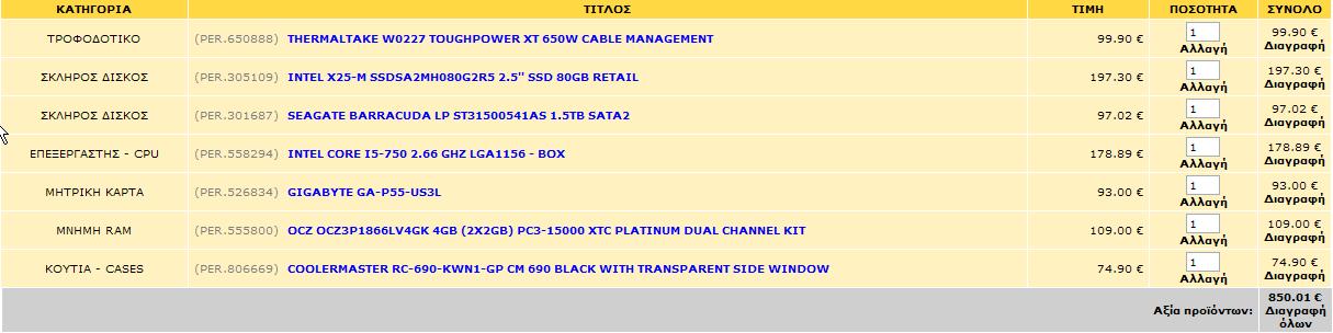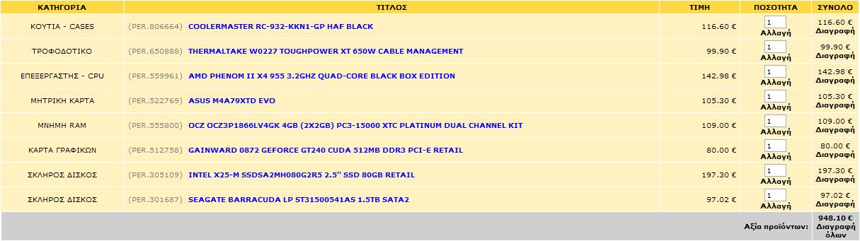 M@ROUD@S Δημοσ. 13 Ιανουαρίου 2010 Δημοσ. 13 Ιανουαρίου 2010 Οριστε φιλε μου μια συνθεση για να παρεις μια ιδεα...948 ευρω και τα υπολοιπα τα βαζεις σε οθονη... Υ.Γ. Επρεπε να εχεις ανοιξει το θεμα στις αναβαθμισεις.