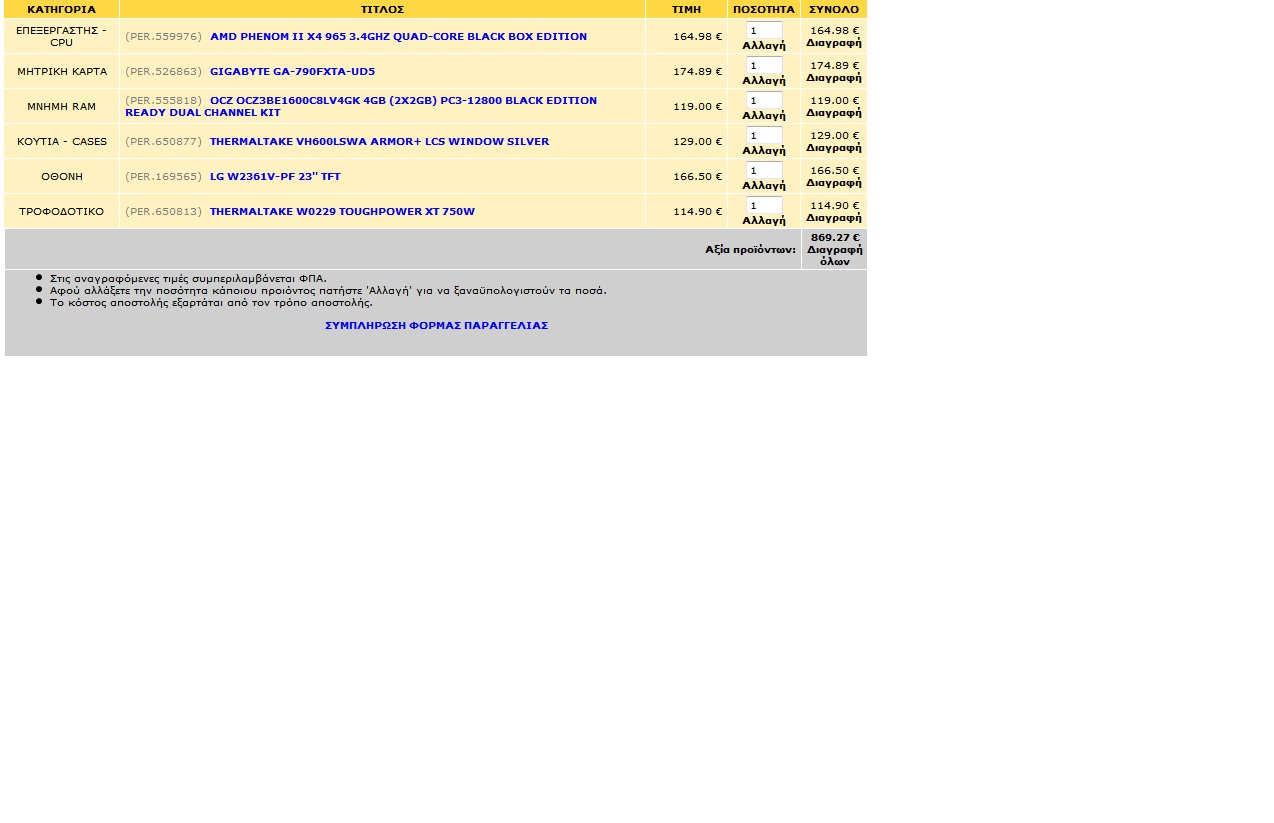 Alexisssss Δημοσ. 22 Ιανουαρίου 2010 Δημοσ. 22 Ιανουαρίου 2010 caution:Σωστοσττττ ---------- Προσθήκη στις 14:30 ---------- Προηγούμενο μήνυμα στις 14:27 ---------- Και απ'οτι βλεπω ολα αυτα που σου προτεινα υπαρχουν στο pc1.gr και εχουνε ολα καπου στα 20+ευρω διαφορα. Οποτε γιατι να μην παραγγειλεις τα παντα απο εκει... Πιστευω οτι θα βγεις αρκετα κερδισμενος