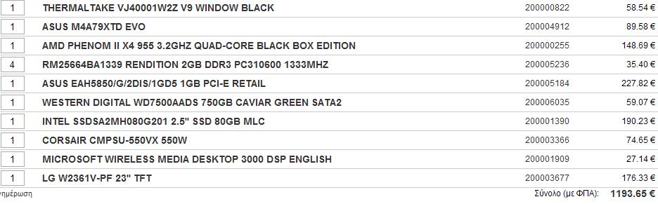 elise Δημοσ. 22 Ιανουαρίου 2010 Δημοσ. 22 Ιανουαρίου 2010 +1 στον απο πανω μου με μονη ενσταση στον σκληρο δισκο (να παει σε cavial BLACK και οχι GREEN) και σε οθονη σε HP LE2201w 22