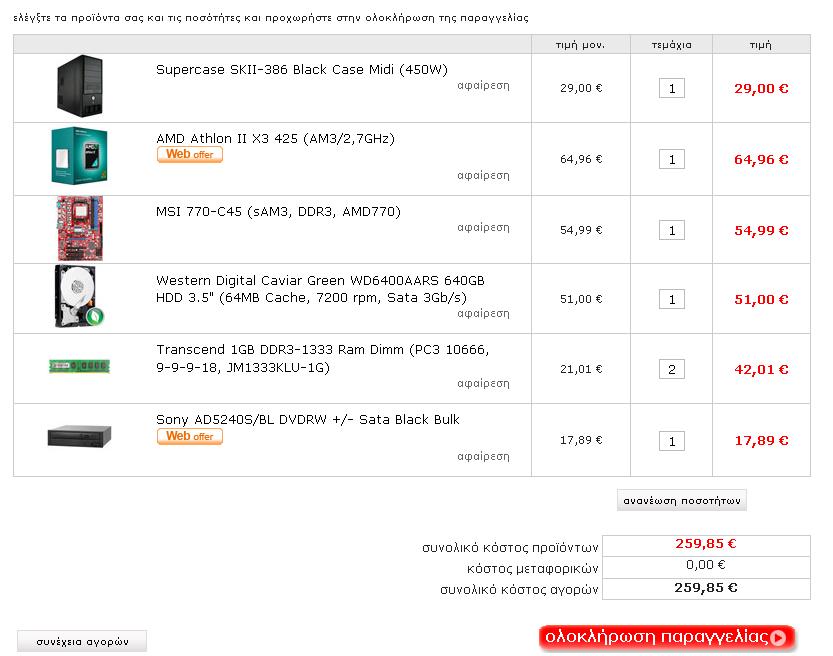necromancer_t Δημοσ. 1 Φεβρουαρίου 2010 Δημοσ. 1 Φεβρουαρίου 2010 AMD ειναι ο επεξεργαστής του παιδιού!!! Εντάξει μωρέ!Λόγω βιασύνης το έγραψα!! Επίσης εγώ σου έφτιαξα μια προσφορά με 259Ευρώ! Βέβαια μπορείς να ρίξεις το κόστος, αγοράζοντας μητρική από το stock του πλαισίου. π.χ. με 25 Ευρώ αντί για 55 και μπορείς να δώσεις 15 Ευρώ για να πάρεις μια ασύρματη κάρτα δικτύου και τελικά να σου έρθει 235 Ευρώ! Έτσι θα έχεις και κάποια χρόνια εγγύηση για τις συσκευές που αποτελούν τον υπολογιστή σου!! Πάντως θα ξαναπώ ότι αν σου ρίξει την τιμή στο 200 παίνρεις τον υπολογιστή του φίλου σου!!! Όσον αφορά το τροφοδοτικό, το χρησιμοποιώ και γω και λειτουργεί μια χαρά. Αφού οι απαιτήσεις σου δεν είναι τρομερές δεν θα δεις καμιά τρελή διαφορά ό,τι τροφοδοτικό και να πάρεις...