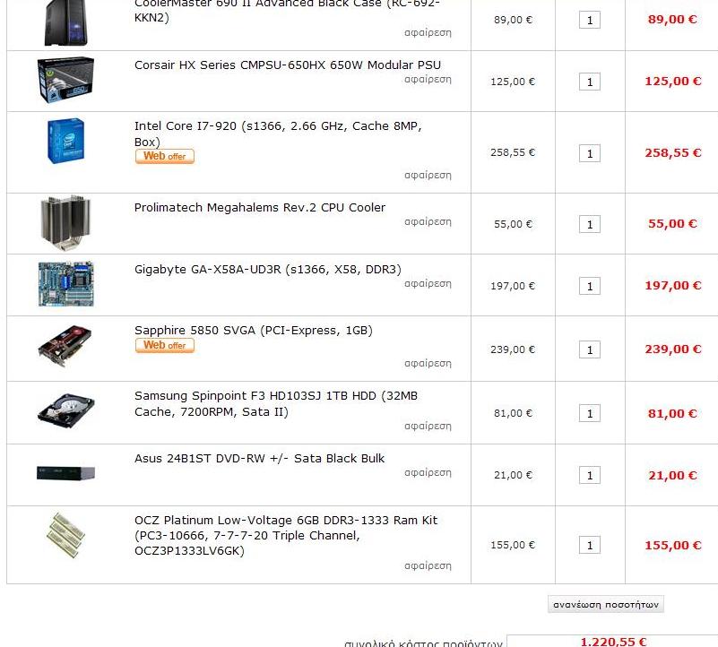 BaLsAmoMenos Δημοσ. 22 Φεβρουαρίου 2010 Δημοσ. 22 Φεβρουαρίου 2010 Που ειναι το λαθος? Βασικα, 1500 εουρος max αντε κανα 100αρι το πολυ πανω (οχι κατω). Οθονη δεν εχω, θελω. Μου κεντρισε το ενδιαφερον μια 24αρα LED αλλα ο ThReSh, μεταξυ αλλων, προτεινε this guy here. Δεν τον ξερω τον ThReSh αλλα φαινεται ξηγημενο παιδι και εγω επειδη ειμαι αθωος τον εμπιστευομαι τυφλα οτι και να λεει (δεν κανω πλακα). Πριν με κραξετε για την σαβουρα τον 920, θα σας πω οτι δεν τειθεται θεμα αλλαγης σε i5 750 (εκτος και αν με πεισει με καποιο τροπο ο ThReSh ). Ολα τ'αλλα ας τα συζητησουμε. Ηδη με αυτες τις επιλογες και την NEC φτανουμε στα 1530 ευρω. Αν σκεφτουμε οτι θελω και keyboard+mouse+speakers (εκτος και αν παρω τιποτα σαβουρες απλα για να υπαρχουν) ειμαστε FOUL. Μηπως να παρω τα ιδια εξαρτηματα (η οποια αλλα προταθουν τελοσπαντων) απο διαφορετικα μαγαζια η και απ'εξω για να γλυτωσω καποια απο τα χρηματα και να τα επενδυσω σε καλυτερα περιφερειακα? Τελος, πειτε μου οτι ειμαι μαλκας που θελω το 3D Vision και οτι δεν χρειαζεται να το παρω γιατι δεν με ακουω. Η εστω, αν πουμε οτι βαριεμαι να περιμενω τις νεες καρτες της Nvidia (ποτε ερχονται? τιμες?), αν πεσω σε καμια απο τις τωρινες GTX (οχι την 285) μεχρι ποτε θα μπορουν να αντεχουν (τα video games) ? Και εχοντας στο μυαλο οτι μαλλον part-time στην Αγγλια δεν θα κανω πολιτικος, ποσο μπορει να κρατησει ενα τετοιο μηχανημα?