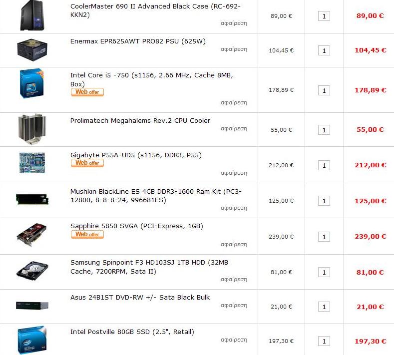 Dropsreef Δημοσ. 23 Φεβρουαρίου 2010 Δημοσ. 23 Φεβρουαρίου 2010 νομιζω οτι η παρακατω συνθεση ειναι ικανοποιητικη ωστε να σε βοηθησει να φτασεις ψηλά!(για 5ghz νομιζω τα παραλες) αν θεωρεις οτι μπορεις να περιμενεις για ssd δεκτον οθονη ωστε να μην ξεφυγουμε κατα πολυ απο το budget σου LG W2363V-WF TFT Monitor 23'' Συνολικη τιμη(κουτι+οθονη)1550€ αν τελικα δεν βαλεις ssd και αποφασισεις να πας για καλα περιφερειακα πληκτρολογιο:Razer Arctosa Silver Keyboard ποντικι:Logitech G500 Ανθρακί Μouse ηχεία:Logitech Ηχεία X-540 και το συγκεκριμενο κουτακι εχει πολυ καλο airflow και σε αυτο βοηθαει το γεγονος οτι τα καλωδια περνανε πισω απο την μητρικη τελικη τιμη 1545€(χωρις ssd)