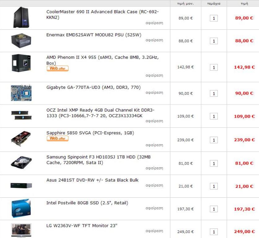 vaggospat13 Δημοσ. 23 Φεβρουαρίου 2010 Δημοσ. 23 Φεβρουαρίου 2010 Επειδη σε κοβω η πιο "βαρια" ενασχοληση με τον υπολογιστη να ειναι το gaming:p(το υποψιαζομαι γιατι με laptop δεκαετιας τι βαρια εφαρμογη να τρεξεις?) ο amd955 σε υπερκαλυπτει!Η μητρικη εχει πανω και sata3,usb3.0,e-sata O σκληρος δισκος μαλλον ειναι ο καλυτερος αυτη τη στιγμη σε σχεση αποδοση-τιμη-χωρητικοτητα Η καρτα γραφικων απο τις καλυτερες αυτη τη στιγμη που θα σε ικανοποιησει και σε απαιτητικα games To dvdrw ποιοτικο και εντελως αθορυβο Το κουτακι εχει πολυ καλo air flow και cable management Με τον ssd θα δεις οντως τεραστιες διαφορες στο συστημα σου Πληκτρολογια-ποντικι τα συγκεκριμενα τα θεωρω ιδανικα για gaming! Δεν περιγραφω αλλο Και η οθονη led που διαλεξες στη συγκεκριμενη τιμη μια χαρα ειναι συνφωνω 100% ΓΙΑ ΗΧΕΙΑ πληκτρολογιο και ποντικι δεν το χω ψαξει το θεμα τα ΥΠΟΛΟΙΠΑ θα τα επερνα ακριβως ετσι αν θες να πας ιντελ οι επιλογες ειναι http://www.plaisio.gr/Computers/Hardware/Motherboards/Gigabyte-P55A-UD3-1156-P55-DDR3-GAP55UD3-00-G.htm http://www.plaisio.gr/Computers/Hardware/CPU/with%28MPT=Core%20i5%207XX%29.htm ολα τα οιπολοιπα οκ ειναι ι7 για 100κ βαλε ευρω παραπανω δεν αξίζει εκτος αν ασχολεισαι με Mathematica photoshop pinnacle κπλ