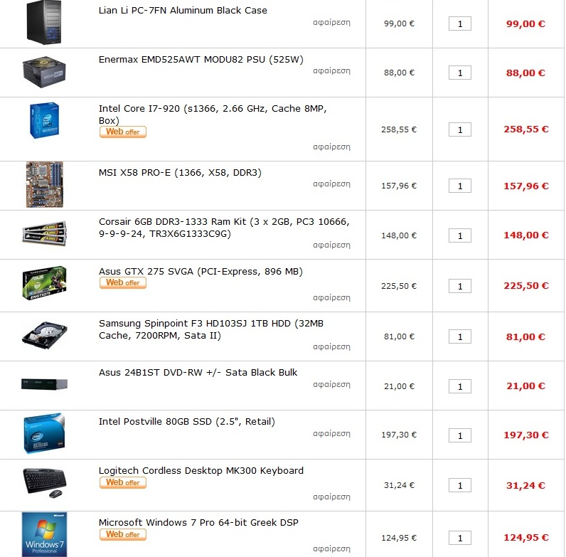 Dropsreef Δημοσ. 2 Μαρτίου 2010 Δημοσ. 2 Μαρτίου 2010 συνθεση 1400€ σε κουτι 30€? ψυκτρα για τρελο κλοκαρισμα? καρτα γραφικων οχι αξιολογη για την δουλεια που το θελει? ssd 60gb οταν στην ιδια τιμη υπαρχει ο intel στα 80gb? τροφοδοτικο 850watt?