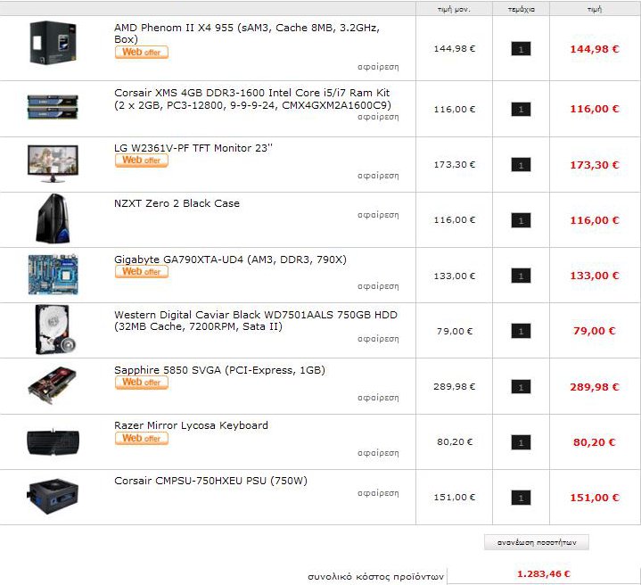 zampONakiaskiou Δημοσ. 15 Απριλίου 2010 Μέλος Δημοσ. 15 Απριλίου 2010 Για να μην ανοίγω νέο θέμα... Κάτι πάθαν οι φίλοι μου και θέλουν καινούριο pc...θα με κάνουν να αναβαθμίσω κι εγώ έτσι όπως πάει μες την κρίση! λοιπόν το budget αυτή τη φορα είναι γύρω στα 1300 Κι έκανα την εξής σύνθεση.. Οι απαιτήσεις είναι σχεδόν ίδιες με το προηγούμενο pc απλά με μεγαλύτερο budget.... Το κουτί δεν αλλάζει όλα τ'άλλα τα δεχόμαστε!
