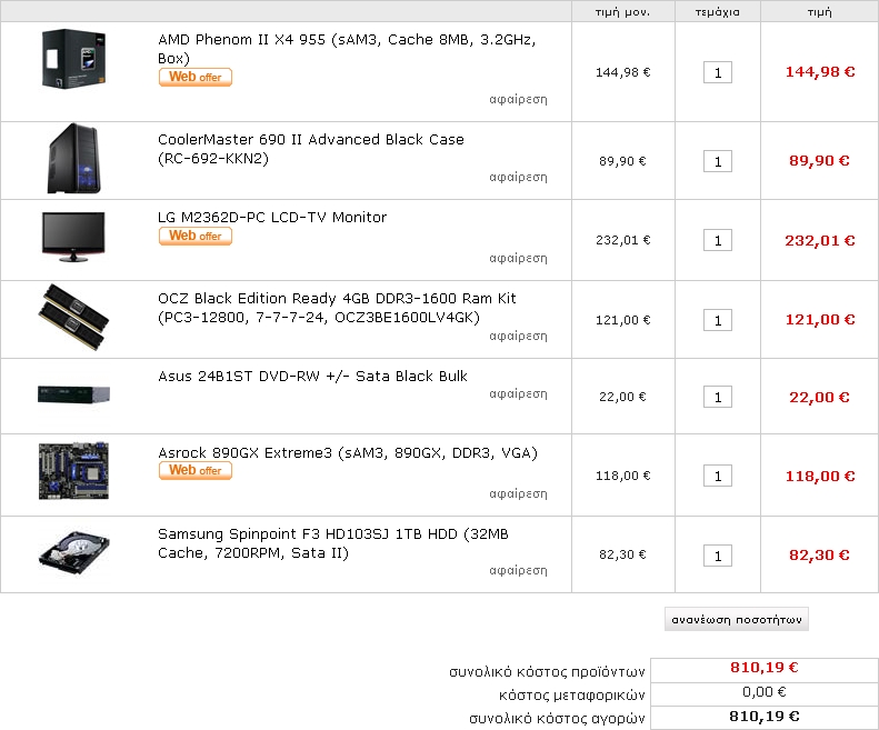 MasterX Δημοσ. 29 Μαΐου 2010 Δημοσ. 29 Μαΐου 2010 Λοιπόν τον ήπιαμε.Πήρα τα πάντα εκτός κάρτας γραφικών μιας και περίμενα κάποια χρήματα που τελικά ήρθαν αλλά η τιμή της ανέβηκε 100 ευρώ πάνω. Ήμαρτον. πως ειναι δυνατον να ανεβηκε τοσο?