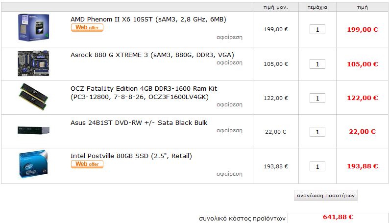Dropsreef Δημοσ. 28 Μαΐου 2010 Δημοσ. 28 Μαΐου 2010 σκληρός:Samsung 1TB SpinPoint F3 68,47€ καρτα γραφικών:GIGABYTE ATI RADEON HD5850 1GB 259€ Παρατήρηση 1η:Ποιος ο λογος να πληρώσεις 13.83€ επιπλεον για τον σκληρο(δες εδω και εδω),28.88€ για το κουτί(δες εδω και εδω),20.09€ για το τροφοδοτικό(δες εδω και εδω),26€ για την καρτα γραφικων(εδω και εδω) Εξοικονομεις δηλαδη για τα ιδια προϊοντα αν δεν τα αγορασεις απο το παλισιο 89€ Παρατήρηση 2η:Γιατι οχι AMD?Εγω σου εβαλα επίτηδες στην συνθεση εξαπυρηνο για να εχεις μια ανεση και στο μελλον σχετικα με εφαρμογες.Εννοειται οτι και ο AMD 955 ειναι υπεραρκετος και εννοειται οτι σε θεμα gaming διαφορες δεν εχουν! Σε θεμα gaming o intel i-5 με τον amd 955 ελαχιστες διαφορες σε fps,σε θεμα εφαρμογων ο εξαπυρηνος amd υπερτερει του intel i-5. Τελος εντελως πληροφοριακα σου αναφερω οτι η Intel του χρονου το socket 1156 το παει για αποσυρση οποτε δεν χωράει καμία μα καμία αναβάθμιση Παρατήρηση 3η:Η συνθεση που σου ετοιμασα κοστιζει 1157€ χωρις λειτουργικο!Αρα υπαρχει ακομα μεγαλο περιθωριο αν δεν γινεται να σου το φερει ο "θειος" Παρατηρηση 4:Στην παραπανω συνθεση χωραει και η 5870 και το πανακριβο λειτουργικο που διαλεξες χωρις να ξεπερασεις τα 1500€