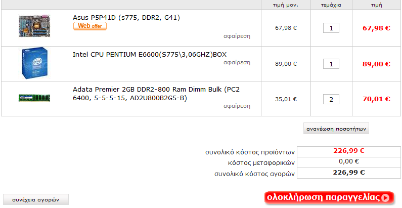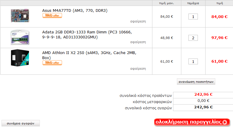 pano Δημοσ. 5 Ιουνίου 2010 Δημοσ. 5 Ιουνίου 2010 m/b: http://www.techneasy.gr/index.php?target=products&product_id=32530 64,20€ ram:http://www.pc1.gr/showitem.php?ID=200005392 95.54 € cpu:http://www.e-plaza.gr/index.php?target=products&product_id=34371 83€ Σύνολο 243€.