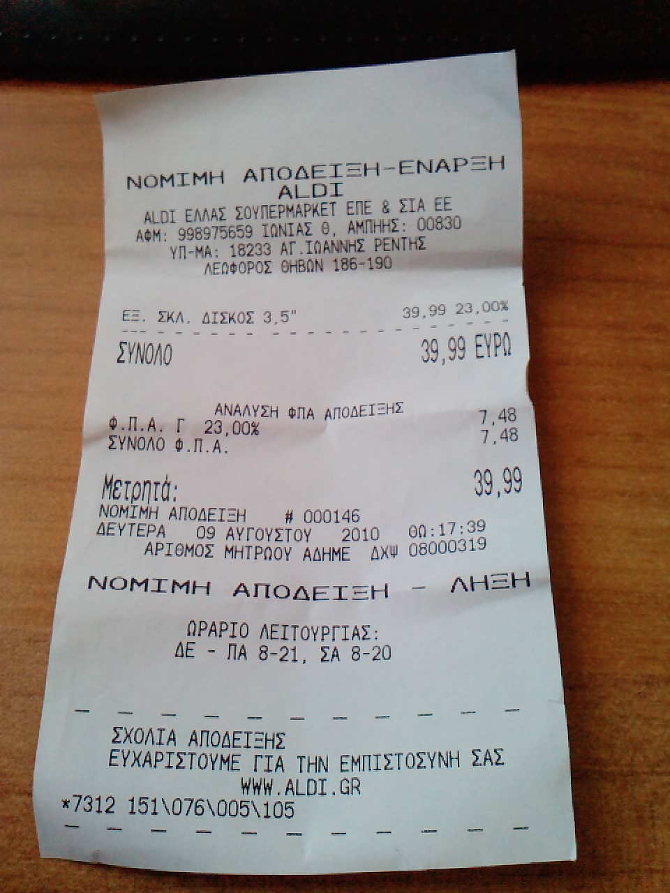 Alxnks Δημοσ. 10 Αυγούστου 2010 Δημοσ. 10 Αυγούστου 2010 Μωλις τωρα μιλησα με την εξυπητετηση πελατων και μου ειπαν οτι υπαρχει καποια διαθεσημοτητα και η τιμη ειναι 49.99 (δεν αμφισβητω τον dimitris74 απλα αυτο μου ειπαν στο τηλ)@ The_Judas στη Θεσ/νικη εχει στη Σταυρουπολη. μα πως να τον αμφισβητησεις...εδω εχει ανεβασει την αποδειξη παντως η τιμή χτες ήταν 39,99 το πρωι περασα απο το aldi στην πειραιως, μιας και επεστρεφα απο αθηνα, και δεν γνωριζαν τιποτα, οποτε πηγα και στη θηβων, οπου κι εγω τον ειδα στα 49.99 και ρωτησα πως γινεται χτες να ειχε 39.99 και μου ειπαν οτι υπηρχε ενα αλλο μοντελο 2.5 ιντσες, ενω αυτο με τα 49.99 ειναι 3.5 ιντσες. το πηρα παντως γιατι και στα 50 ευρω παλι ειναι πολυ καλη τιμη για 1tb! εσυ δημητρη ποιο πηρες; 2.5 ιντσες η 3.5; ακυρο...ειδα στην αποδειξη σου οτι λεει 3.5, οποτε ωρα για ενα ξεχεστικο τηλεφωνημα!! επισης προσεξα οτι εσενα η αποδειξη λεει ΕΞ. ΣΚΛ. ΔΙΣΚΟΣ 3.5'' ενω η δικη μου ΕΞ. ΣΚΛ. ΔΙΣΚ. 1000GB. εσενα ειχε μεσα καλωδιο esata; εμενα μονο usb. update: απο τα κεντρικα παντως που μολις μιλησα (μου ειπαν οτι τους ειχε παρει και καποιος απο βορεια ελλαδα νωριτερα), δικαιολογηθηκαν οτι ισως ειχε γινει λαθος και διορθωθηκε σημερα και οτι εσυ ησουν τυχερος. ηταν ευγενικη η κοπελα και δεν το τραβηξα παραπανω, αλλωστε ειπαμε οτι και στα 50 (απο 80 ετσι κι αλλιως αρχικη) ειναι πολυ καλη ευκαιρια
