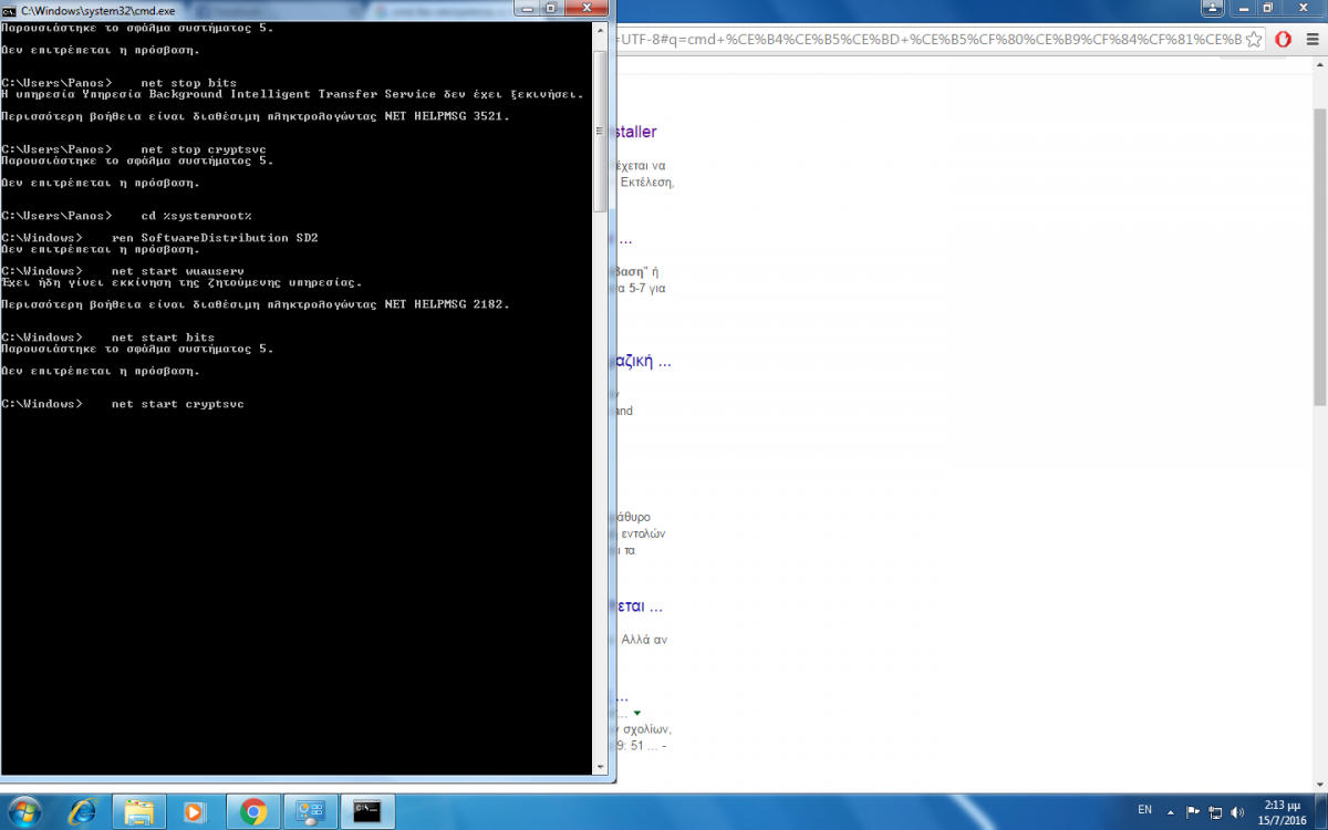 dangar Δημοσ. 15 Ιουλίου 2016 Δημοσ. 15 Ιουλίου 2016 To win update πρέπει να σταματήσει για να περαστούν οι ενημερώσεις. Κλείσε τις ενημερώσεις ώστε να μην κάνουν ενημέρωση καθόλου. Αν υπάρχει πρόβλημα με τον φάκελο software distribution μετονόμασέ τον (βάλε ένα 2 ή κάτι άλλο στο όνομα του) αφού πρώτα σταματήσεις τις υπηρεσίες bits και wauauserv , ώστε να αποκλειστεί το ενδεχόμενο πρόβλημα από εκεί. Αν δε γίνεται σε κανονική λειτουργία δοκίμασε μήπως γίνει σε ασφαλή λειτουργία.Αν και θα έπρεπε να αναφερθεί στην αρχή , έχεις win7 με το sp1 έτσι;