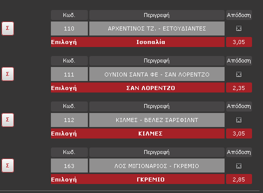 ribo2 Δημοσ. 14 Νοεμβρίου 2012 Δημοσ. 14 Νοεμβρίου 2012 Για οσους θελουν να συγκρίνουν αποδόσεις στο στοίχημα... ας ριξουν μια ματια Σύγκριση Αποδόσεων 1Χ2 Σύγκριση Αποδόσεων Under Over Σύγκριση Αποδόσεων Draw no Bet ( δεν παίζει η ισοπαλία ) Σύγκριση Αποδόσεων Goal Goal Σύγκριση Αποδόσεων No Goal http://www.masterodds.com Σύγκριση αποδοσεων στοιχημα