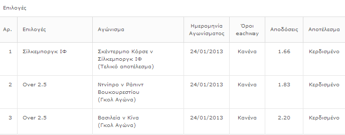 optimus_crime Δημοσ. 24 Ιανουαρίου 2013 Δημοσ. 24 Ιανουαρίου 2013 Ταμείο σήμερα σε τριάδα φιλικών Και έχω Παοκ @over2.5 Κερδισμενο Μπετις - Αθλ.Μαδριτης @ΓκολΓκολ Wimbledon-Port Vale @2