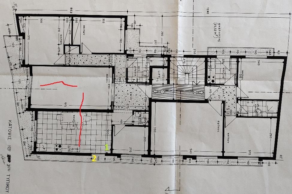 EFIT55 Δημοσ. 14 Μαϊου Δημοσ. 14 Μαϊου Κυρία σχεδόν 50 ετών, τριών ορόφων, έχει παραμεληθεί και χρειάζεται φροντίδα Καλησπέρα σε όλους, Τα δεδομένα: α) Πλάκα οροφής 13cm, εάν διαβάζω σωστά το σχέδιο της οικοδομής. β) Άνωθεν αυτής, μπάζα και μωσαϊκό ~ 30cm. Διότι, έτσι έκαμαν παλαιά την θερμομόνωση, μαθαίνω – σ.σ. εάν πράγματι ήταν αυτός ο στόχος, σας διαβεβαιώ ότι απέτυχαν… γ) Άνωθεν αυτών, μικρή στρώση κάποιου σκληρού στρώματος – πιθανώς για δημιουργία κλίσεων. Οι υπάρχουσες ρύσεις κρίθηκαν επαρκείς από τους ειδικούς (βλ. παρακάτω) δ) Άνωθεν αυτής, στρώση/στρώσεις κάποιου θερμομονωτικού. Θυμάμαι μόνο ότι είχε προταθεί πάχος 5cm και τοποθετήθηκε 10cm από επιμονή των ιδιοκτητών. ε) Άνωθεν αυτού, υδρομόνωση με ασφαλτόπανα. Τα γ,δ,ε τοποθετήθηκαν κατά μια γνώμη περίπου 15 έτη, ενώ κατά άλλη 20 και πλέον έτη πριν τη σήμερον. Το πρόβλημα: 1. Καθώς τα ασφαλτόπανα έχουν υπερβεί κατά πολύ το προσδόκιμο ζωής τους, έχουν πλέον διαβρωθεί από το χρόνο και τις καιρικές συνθήκες, τόσο ώστε να έχουν παρουσιάσει ρωγμές σε πλείστα σημεία. 2. Δεν τοποθετήθηκαν εξαεριστήρες, η λειτουργία των οποίων θα μπορούσε ίσως να μετριάσει / επιβραδύνει τη φθορά των κατώτερων στρωμάτων. 3. Επακόλουθο η εισροή βρόχινων υδάτων στα κατώτερα στρώματα, και η διάβρωση κατά σημεία της πλάκας της οροφής. Σημειώνεται ότι ανά τα έτη, και πριν ακόμη την τοποθέτηση των ασφαλτόπανων, το ταβάνι στον τελευταίο όροφο της οικοδομής είχε εμφανίσει μικρού πλάτους (mm) μεν μεγάλου μήκους δε (έως εκατοντάδων cm) ρηγματώσεις, σε διευθύνσεις στους άξονες x και y της οροφής. Οι ρηγματώσεις είχαν αντιμετωπιστεί με επικαλύψεις κάποιου είδους γάζας απ’ όσο μπορώ να διακρίνω, και βαφής με χρώμα επί αυτής. Στο floorplan σημείωσα (προσπάθησα να, μα το χέρι δεν είναι σταθερό) περίπου τις διαδρομές των μεγαλύτερων με κόκκινο. Τα πρόσφατα συμπτώματα: Η αναμενόμενη οξείδωση οπλισμού, διόγκωση στη στρώση σκυροδέματος, πτώση αυτού μετά των σοβάδων της επικάλυψης. Ο οπλισμός έγινε ορατός εντός της τοιχοποιίας στην οροφή διαμερίσματος αλλά και εκτός αυτής στον πρόβολο της πλάκας της ταράτσας. Στις φωτό μπορείτε να δείτε την πρώτη περίπτωση διαστάσεων ~ 30 Χ 50, και τη δεύτερη σε μικρότερες διαστάσεις ~ 5 Χ 15. Αντίστοιχες ανησυχητικές μικρό-ρωγμές κάνουν ήδη την εμφάνιση τους σε άλλα 2 σημεία στην οροφή. Η αντιμετώπιση: Κλήθηκαν προς βοήθεια ειδικοί επί του θέματος. Αποκρίθηκαν έως τώρα ορισμένοι τεχνίτες αλλά και 2 ζεύγη (όχι ανδρόγυνα 😉) πολιτικός μηχανικός + εγκαταστάτης. Εστιάζοντας στις γνώμες των ζευγών, οι προτάσεις, με αύξουσα σειρά όχλησης/κόστους (το δεύτερο σε αναλογία 1:2:10) ήταν 1. Επικάλυψη της υπάρχουσας τρωθείσας υγρομόνωσης ασφαλτόπανου με τοποθέτηση νέας στρώσης ασφαλτόπανων στην κύρια επιφάνεια της ταράτσας, και κάποιου επαλειφόμενου στην επιφάνεια των προβόλων. Τοποθέτηση εξαεριστήρων κατά το δέον. 2. Αποξήλωση της υπάρχουσας τρωθείσας υγρομόνωσης τόσο από την κύρια επιφάνεια της ταράτσας όσο και από τους προβόλους. Τοποθέτηση νέων ασφαλτικών μεμβρανών. Τοποθέτηση εξαεριστήρων κατά το δέον. 3. Αποξήλωση όλων των στρωμάτων άνωθεν της πλάκας της οροφής. Αναμονή για την πλήρη αφύγρανση της πλάκας. Εκτέλεση αναγκαίων επισκευών. Δημιουργία ρύσεων εκ νέου εάν απαιτείται. Τοποθέτηση νέας θερμομόνωσης και υγρομόνωσης, είτε με ασφαλτικές μεμβράνες είτε με επαλειφόμενα. Το ζητούμενο: Παρά την όψη της οροφής, οι μηχανικοί δεν έδ