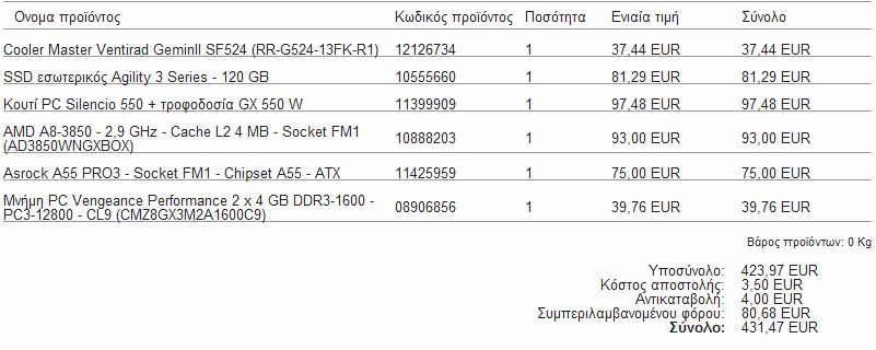 papeipa Δημοσ. 11 Ιουνίου 2012 Δημοσ. 11 Ιουνίου 2012 τι διαλο τοσο τυχερος ήμουνα ? παρελαβα κανονικα με εκπτωση και αμεση παραδοση, το εστησα και πεταει , και μαλιστα δεν με χρεωσαν 3 ευρο μεταφορικα και 4 αντικαταβολη. Επισης την CPU 3570κ (189.2 ευρο απο 215 αρχικη)μου την έστειλαν Σαββατο , που υποτιθεται πληρωνεις extra την γεν.ταχυδρομικη. Τέλος καλο όλα καλα ... αν και τωρα χωρις εκπτωση δεν έχει τρομερες διαφορες στις τιμες απο τα υπολοιπα Online stores. P.S: κανενα απο τα προιοντα που πηρα δεν ηταν refurbished , CPU sealed και ειδικα ο agility 3 120GB που εδωσα 71.5 ευρο με παιδεψε μεχρι να τον ανοιξω με το ψαλιδι.