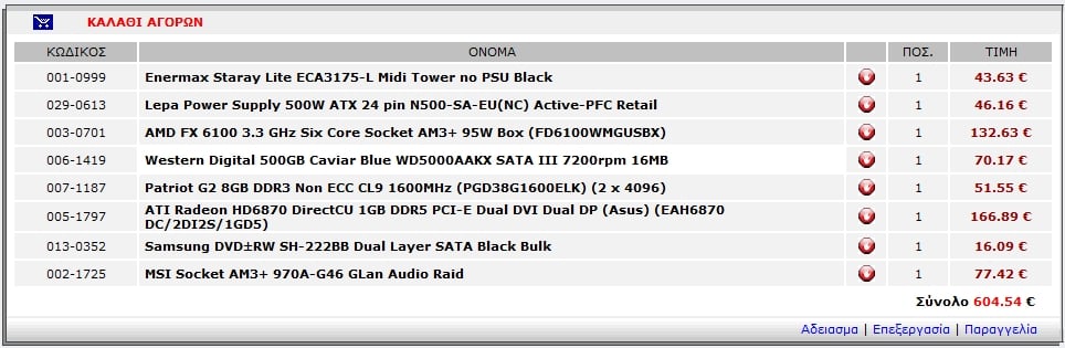 stm00192 Δημοσ. 11 Ιουνίου 2012 Δημοσ. 11 Ιουνίου 2012 Αφαιρείς τον σκληρό, την μισή μνήμη και αντι της 6870 επιλεγεις την φθηνότερη 6850 και έρχεσαι στα 500Ε.