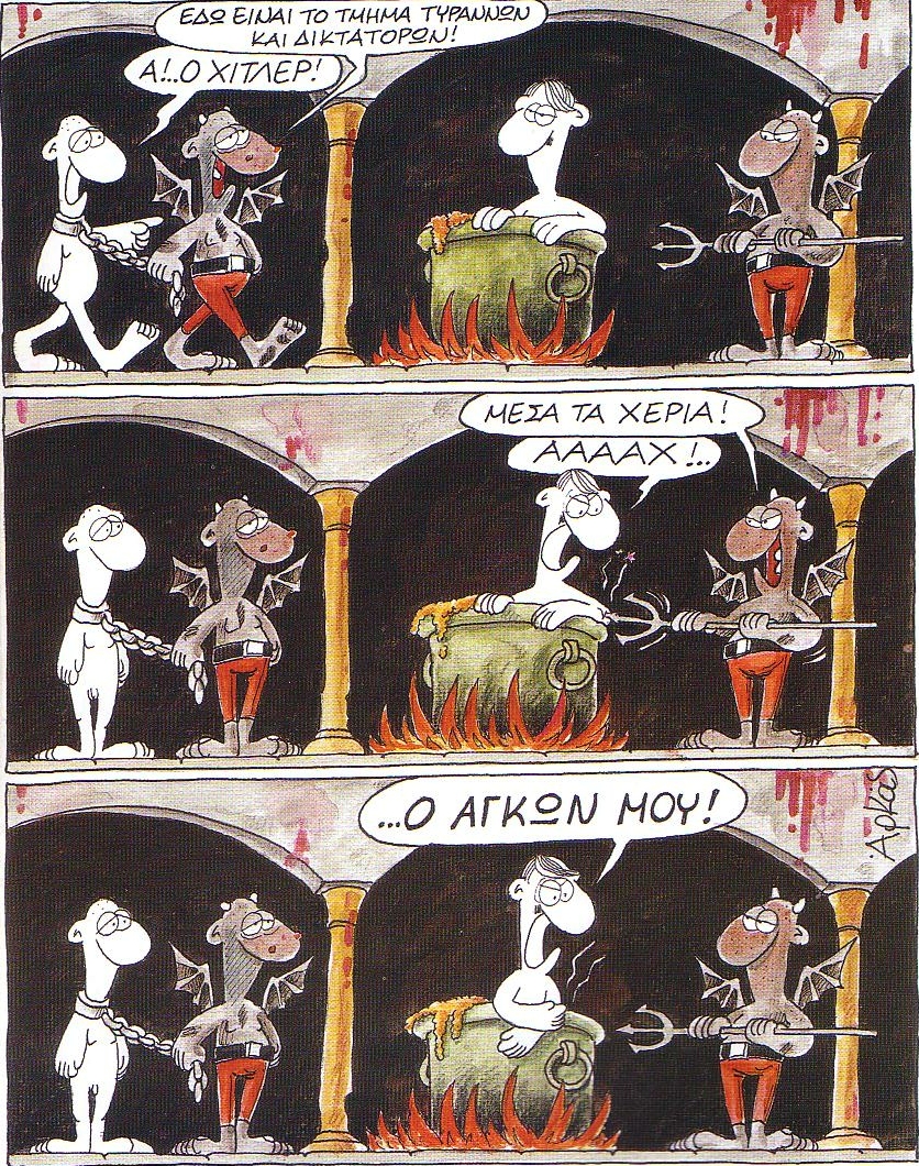 deesnider Δημοσ. 19 Αυγούστου 2013 Δημοσ. 19 Αυγούστου 2013 Ας ποστάρω και εγώ κάτι, έτσι για να μην πει κανείς οτι δεν το έκανα. Ήταν λοιπόν ο Αδόλφος (ο γνωστός ντε, το τριτοξάδερφο του Michaloliaken) και περπατούσε κορδωμένα, καμαρωτός καμαρωτός, σε ένα πέτρινο σοκάκι του Άουσβιτς, ως που κάποια στιγμή σκόνταψε σε μια λακούβα και έπεσε κάτω. -Γαμώτεν, ο αγκών μου! 10