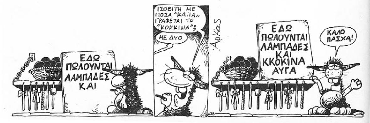star12 Δημοσ. 3 Απριλίου 2015 Δημοσ. 3 Απριλίου 2015 Μια κοπελα ηθελε να φαει γαριδακια μπαινει σε ενα μαγαζι σας παρακαλω κυριε μηπως πουλατε γαριδακια; βεβαιως λεει ο μαγαζατορας ωραια μπορειτε να μου βαλετε μια σακουλα γαριδακια; οκ α και βαλτε μου αλλη μια σακουλα γαριδακια τις γεμιζει και μετα λεει α βαλτε μου και μια 3η σακουλα με γαριδακια οκ α και βαλτε μου και μια 4 η σακουλα με γαριδακια τις γεμιζει και παει να πληρωσει α στην 4η επειδη σας αρεσουν τα γαριδακια δωρο α ευχαριστω κυριε λεει χαρουμενη η κοπελα.τα γαριδακια με αρεσουν και θα το πω στις φιλες μου και θα ρχομαστε ολες μαζι να τρωμε απο δω γαριδακια ναι ειναι ωραια τα γαριδακια α ποιο ειναι το ονομα σας;; γιωργος και το επιθετο;; Γαριδακης 2