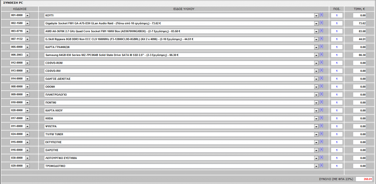 SharkGamer007 Δημοσ. 17 Σεπτεμβρίου 2012 Δημοσ. 17 Σεπτεμβρίου 2012 Έχω ένα DESKTOP -Intel Pentium D @2.68 -512 MB RAM -Μητρικη http://www.gigabyte....a-8i945plge-rh/ -320 GB SATA II -gpu NVIDIA 6200LE -τροφοδοτικο 400 W Επειδή το μηχάνημα δεν την παλεύει και δεδομενου οτι δν υπαρχουν λεφτα οποτε μπορω ν δωσω μεχρι 250 ευρω σκεφτομαι να αλλαξω cpu,μητρικη κ RAM. Έχω σκεφτεί για επεξεργαστή AMD A8 X4 3870k http://www.mgmanager...ox/el/pid/6011/ επειδη εχει κ ενσωματωμενη καρτα γραφικων για να παιζω κανα μανατζερ και κανα προ(γ αυτα τ παιχνιδια πιστευω οτι με καλυπτει απολυτα). Έχει να μου προτείνει καποιος, υπάρχει περιπτωση να βρω μητρικη ATX με socket FM1 κ εστω μια θυρα SATA II ? Μια σύνθεση από Vision Studio που είναι στην Θεσσαλονίκη : Αν βάλεις 20 ευρώ ακόμα θα βάλεις και SSD στο σύστημα σου
