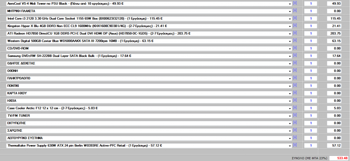 c0prse_grinder Δημοσ. 23 Σεπτεμβρίου 2012 Δημοσ. 23 Σεπτεμβρίου 2012 CPU: http://www.visionstu...?id=23448&cat=2 RAM: http://www.visionstu...?id=21360&cat=4 CASE: http://www.visionstu...&step=undefined GPU: http://www.visionstu...ndefined&step=2 PSU: http://www.visionstu...&step=undefined 484€ ωστε να σου ρθει ΟΚ μαζι με τα μεταφορικα θα μπορουσες να βαλεις και μια ψυκτρα ή 8GB RAM