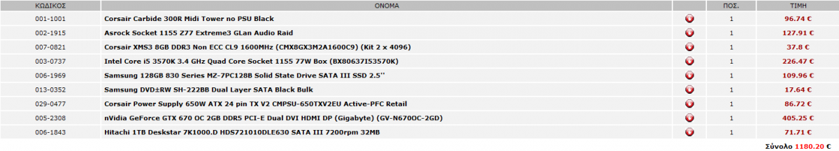 Δεινόσαυρος Δημοσ. 23 Σεπτεμβρίου 2012 Δημοσ. 23 Σεπτεμβρίου 2012 Δες το παρακάτω + αυτόν τον δίσκο: http://www.visionstu...&step=undefined Βγαίνει 1235 χωρίς τα μεταφορικά που δεν νομιζω να είναι πάνω από 30 ευρώ δλδ περιπου 1270. Γενικά ειναι καλύτερη σαν σύνθεση και φτηνότερη από την αντίστοιχη του eshop. To κέρδος σου σε σχέση με τη σύνθεση του eshop είναι 50 ευρώ, μητρική με μεγαλύτερη εγγύηση, λίγο καλύτερη κάρτα γραφικών και ψύκτρα που το άλλο δεν είχε. Αν τώρα για λόγους ευκολίας επιλέξεις το eshop, δεν χάνεις κάτι ουσιαστικό, και κείνη είναι πολύ ποιοτική σύνθεση. Ξέρεις φαντάζομαι ότι δεν μπορείς να διατηρείς δύο λογαριασμούς.